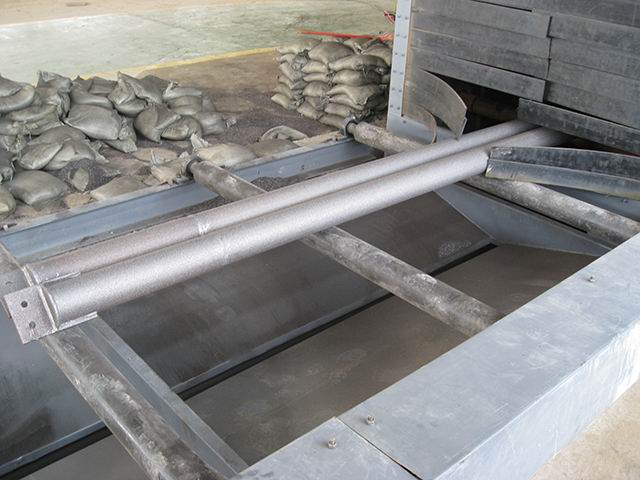 后工件表面表面的光潔度和粗糙度符合有關(guān)的標(biāo)準(zhǔn)規(guī)定。小口徑的鋼管使用內(nèi)壁噴丸機(jī),鋼管內(nèi)壁噴丸處理線,主要包括移動(dòng)臺(tái)車,砂斗,噴砂罐,噴槍,噴槍承載車,鋼管承載系統(tǒng),底部彈丸