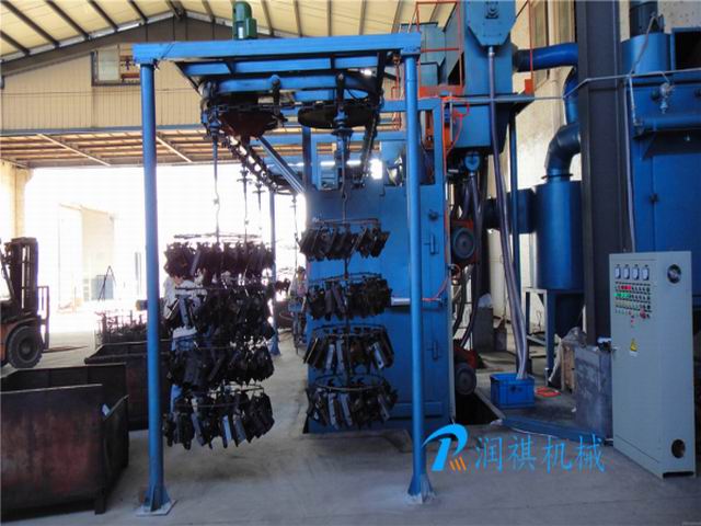 工件隨吊鏈可連續(xù)運行、步進(jìn)運行或采用積放推式懸鏈輸送工件,使工件在裝卸料以及拋丸區(qū)分別處于停止?fàn)顟B(tài),實現(xiàn)定點裝卸和定點拋丸工序,根據(jù)工件不同可單點吊重50~2000kg,且生產(chǎn)率高,運行可靠,對各類易吊掛類零件的大批量清理,非常適用。如發(fā)動機缸體缸蓋、電機殼體、齒輪、摩托車發(fā)動機殼體、機車鉤尾框組件、轉(zhuǎn)向架組件、五金工具殼體、水泵等清理效果尤佳。通過拋丸清理,不但可以去除工件表面的銹蝕,清理掉結(jié)構(gòu)件上的焊渣,還可以消除工件的焊接應(yīng)力,提高工件的抗疲勞強度,增加工件噴漆時的漆膜附著力,并達(dá)到提高整個工件表面及內(nèi)在質(zhì)量的目的。是汽車、拖拉機、柴油機、電機、閥門等行業(yè)的理想選擇等。一般可按照用戶產(chǎn)品要求設(shè)計制作。